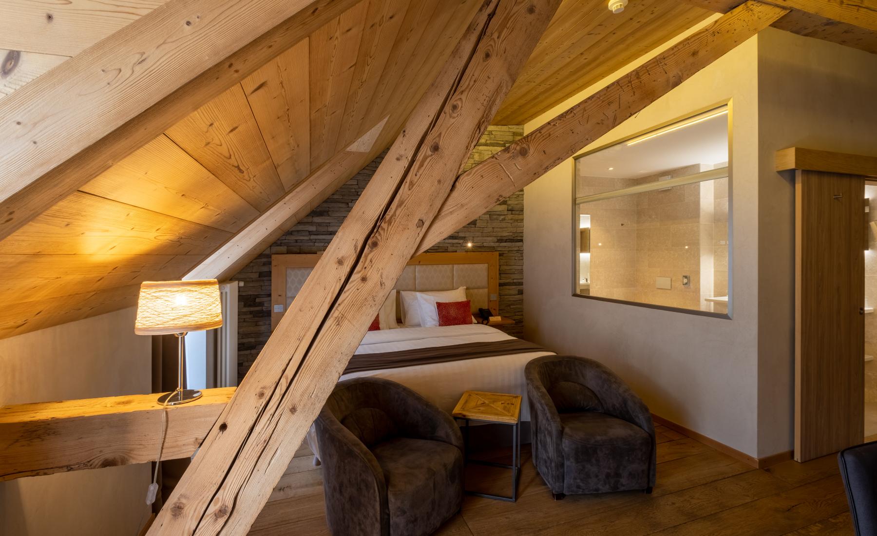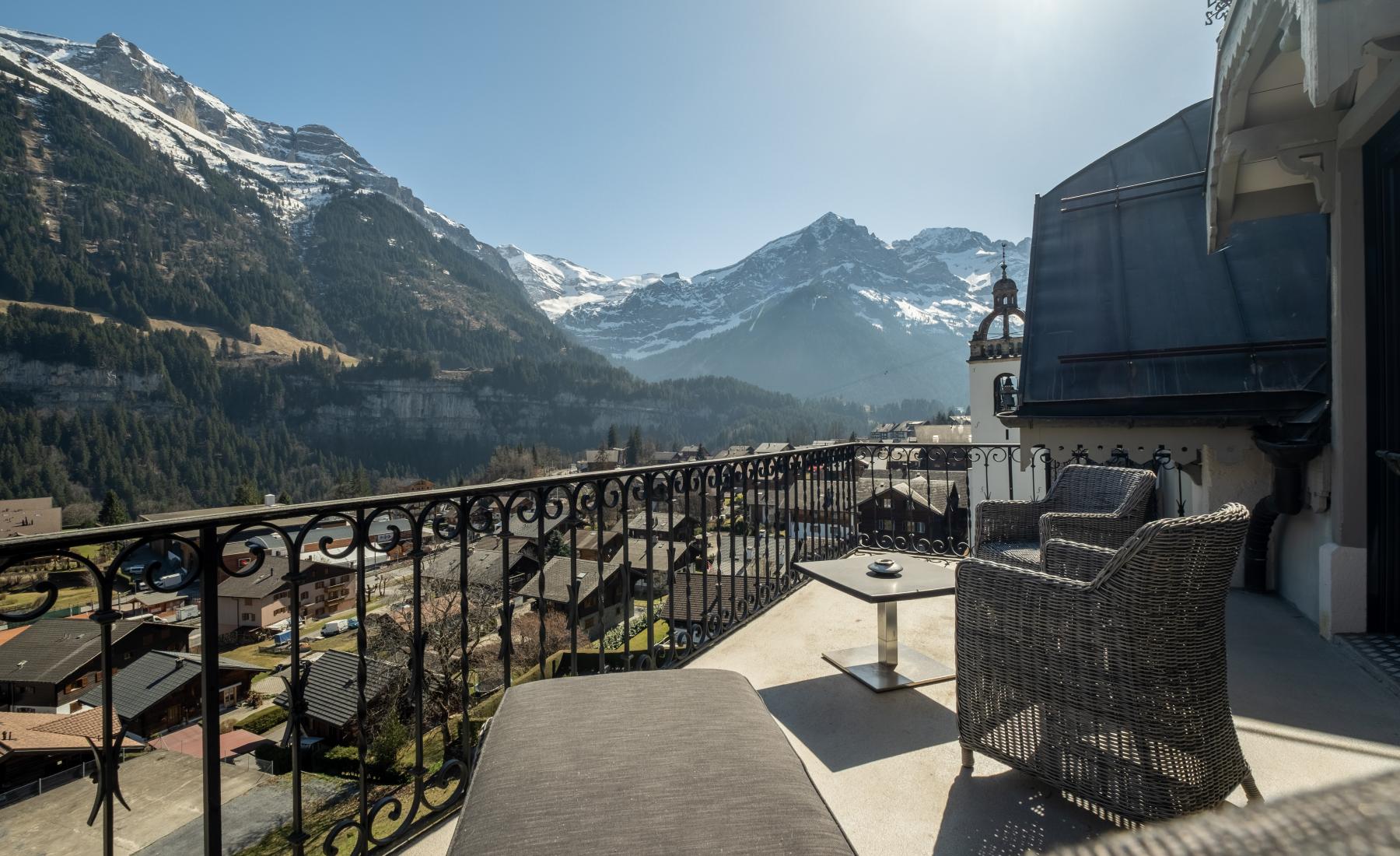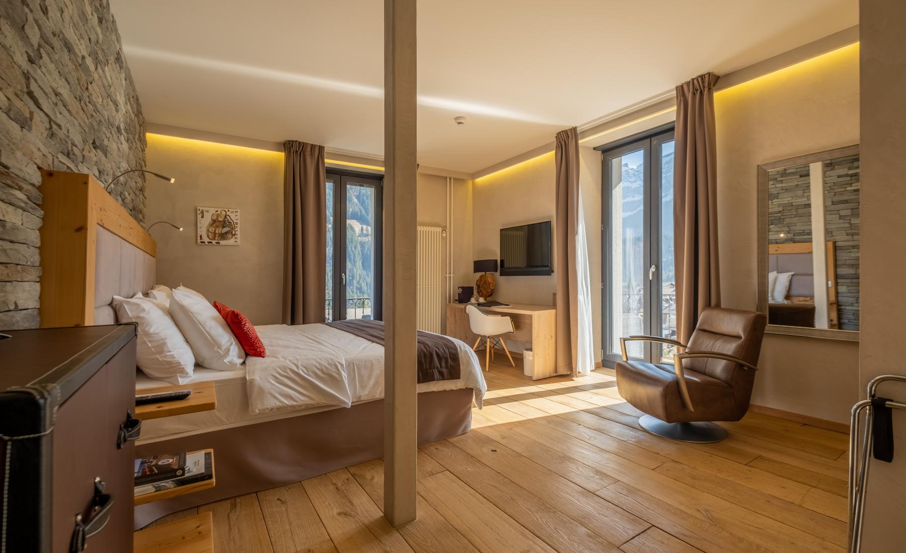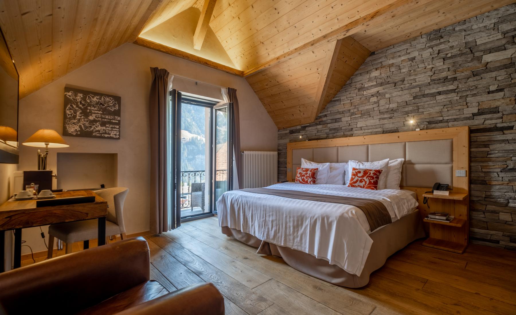 Chambre alliant confort et raffinement avec balcon ou terrasse et vue sur les majestueuses Dents du Midi. Possibilité de chambres jumelées (sur demande).